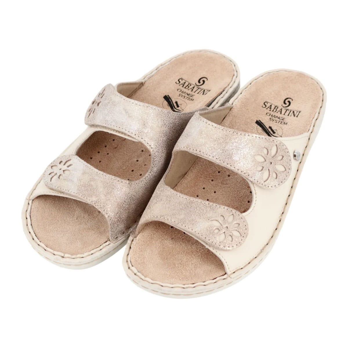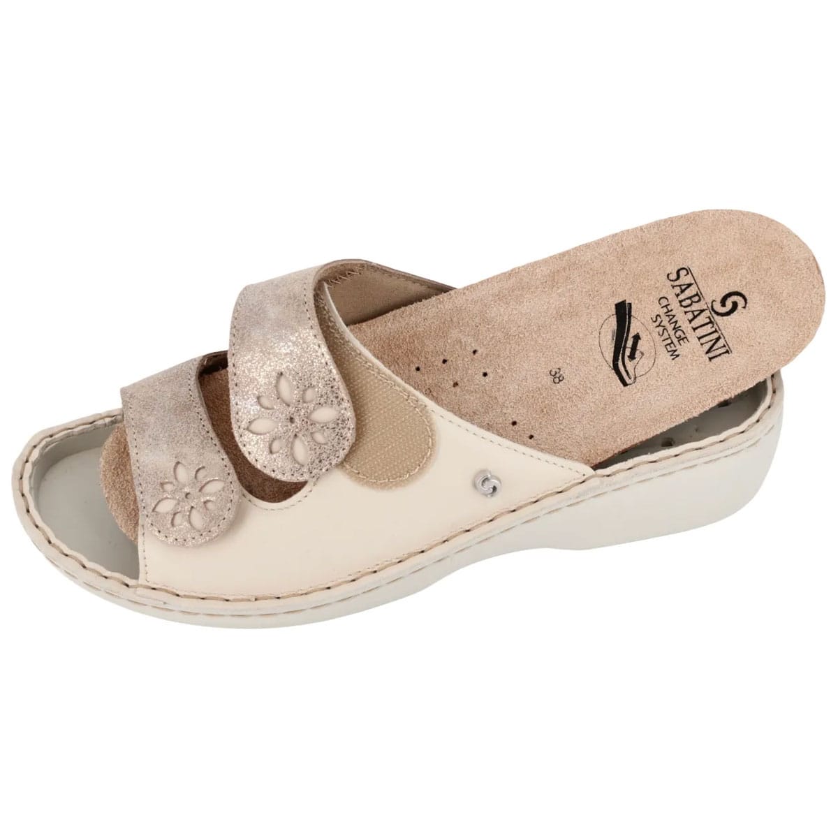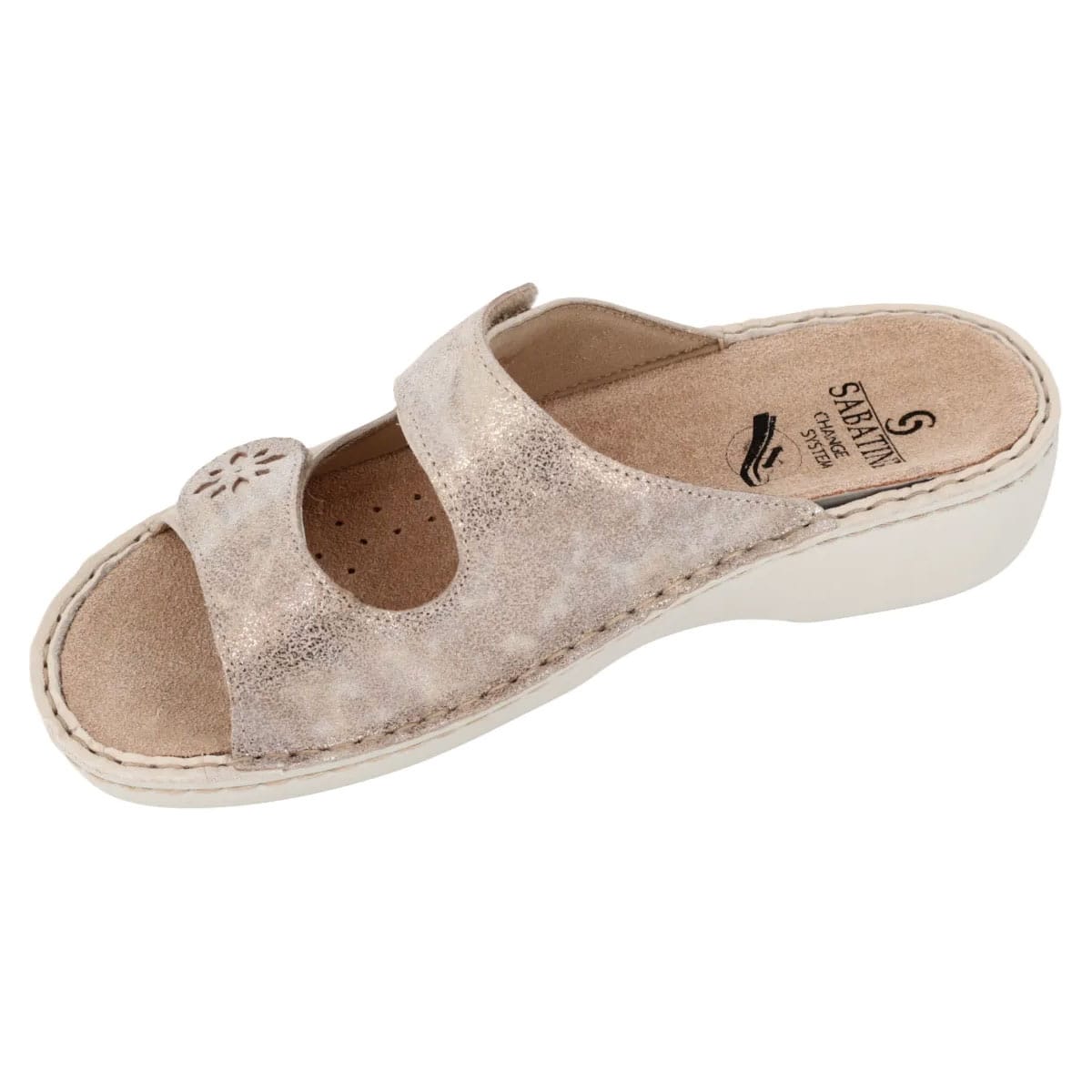 Ciabatta in morbida pelle di alta qualità, ottima regolazione, plantare estraibile, calzata ampia.