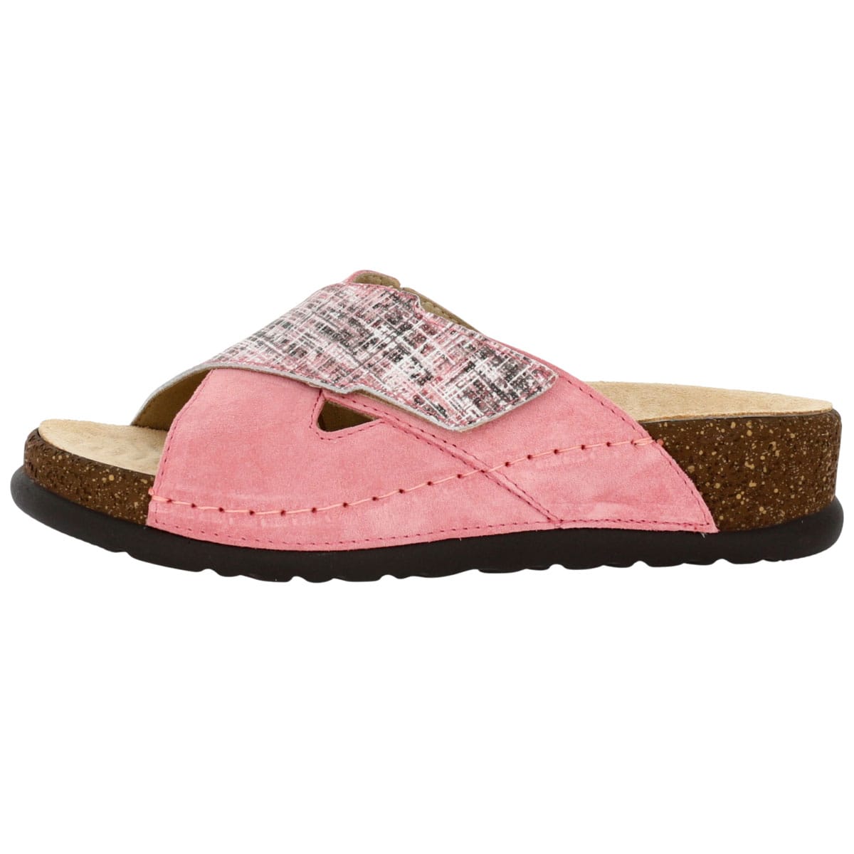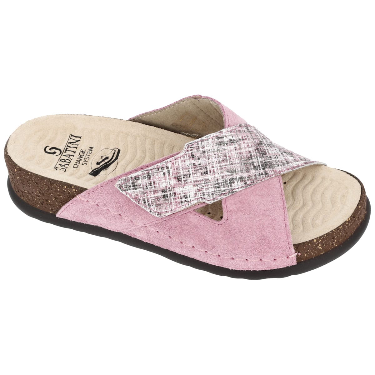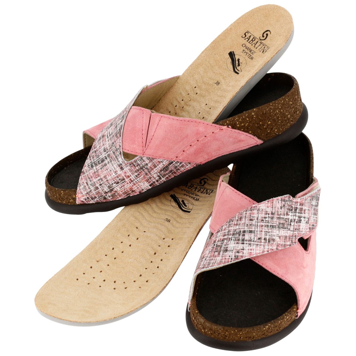 Ciabatta in morbida pelle, soletta estraibile con onduline effetto massaggiante, calzata comoda.