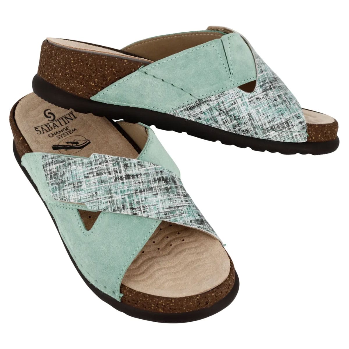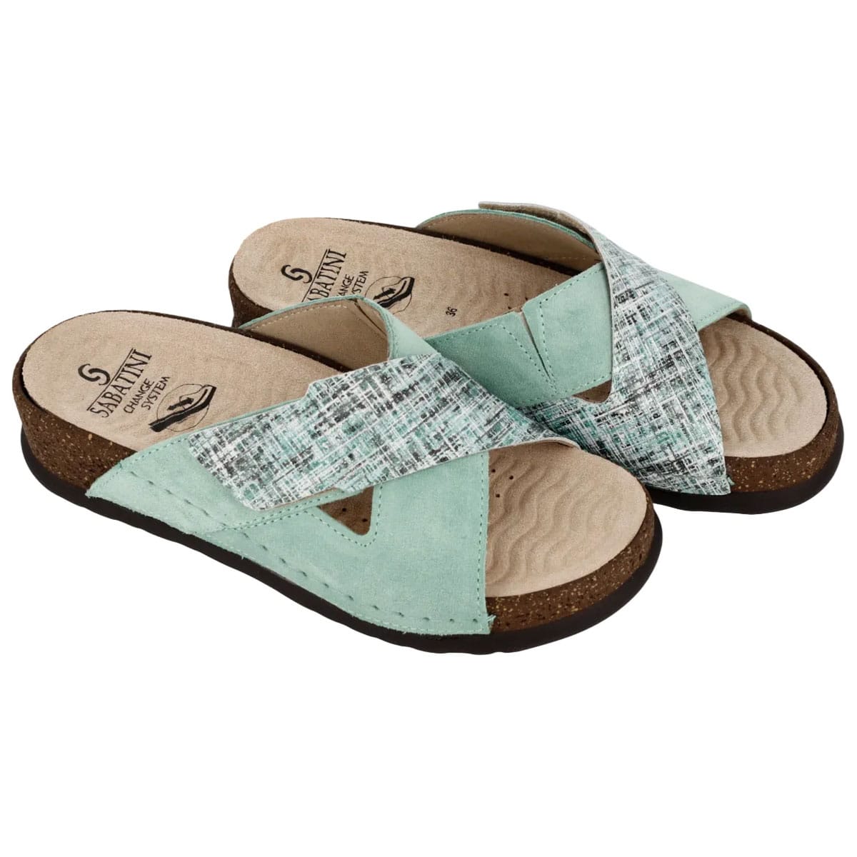 Ciabatta in morbida pelle, soletta estraibile con onduline effetto massaggiante, calzata comoda.