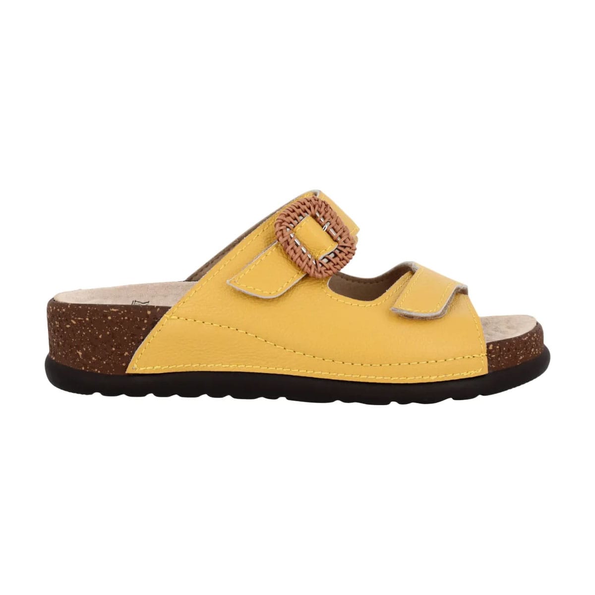 Ciabatta in morbida pelle, soletta estraibile con onduline effetto massaggiante, calzata comoda.