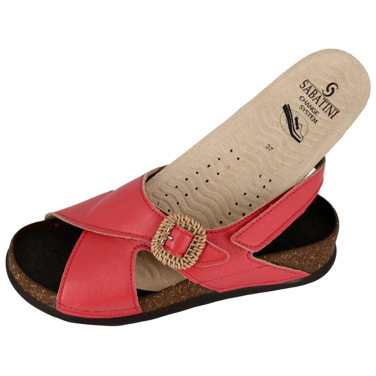 Sandalo in morbida pelle, soletta estraibile con onduline effetto massaggiante, calzata comoda.