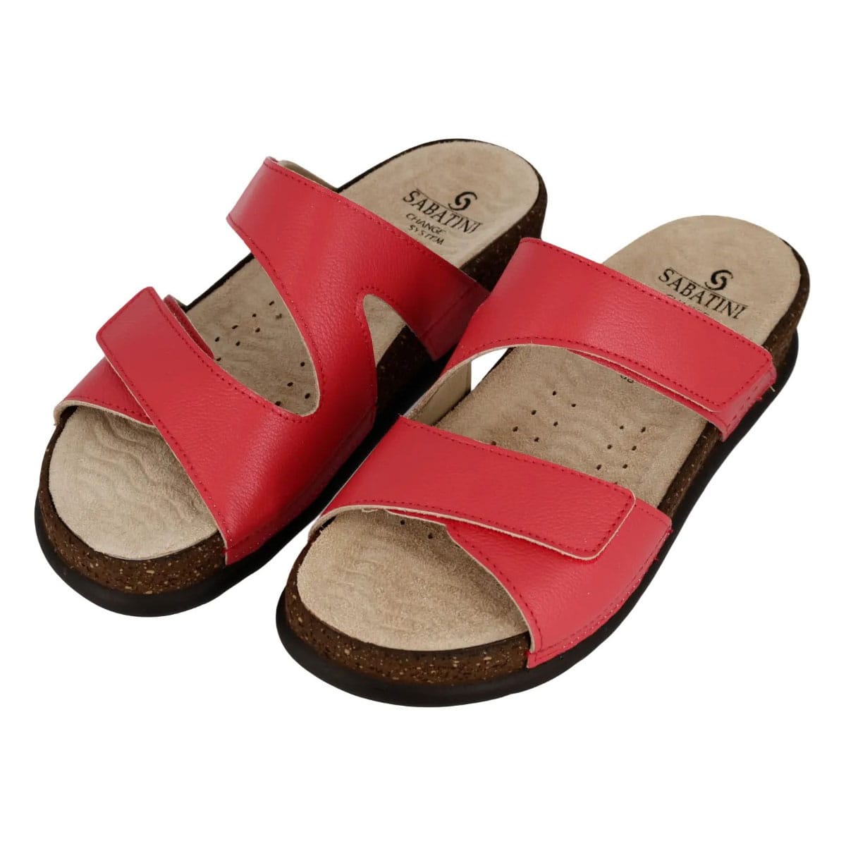 Ciabatta in morbida pelle, soletta estraibile con onduline effetto massaggiante, calzata comoda.