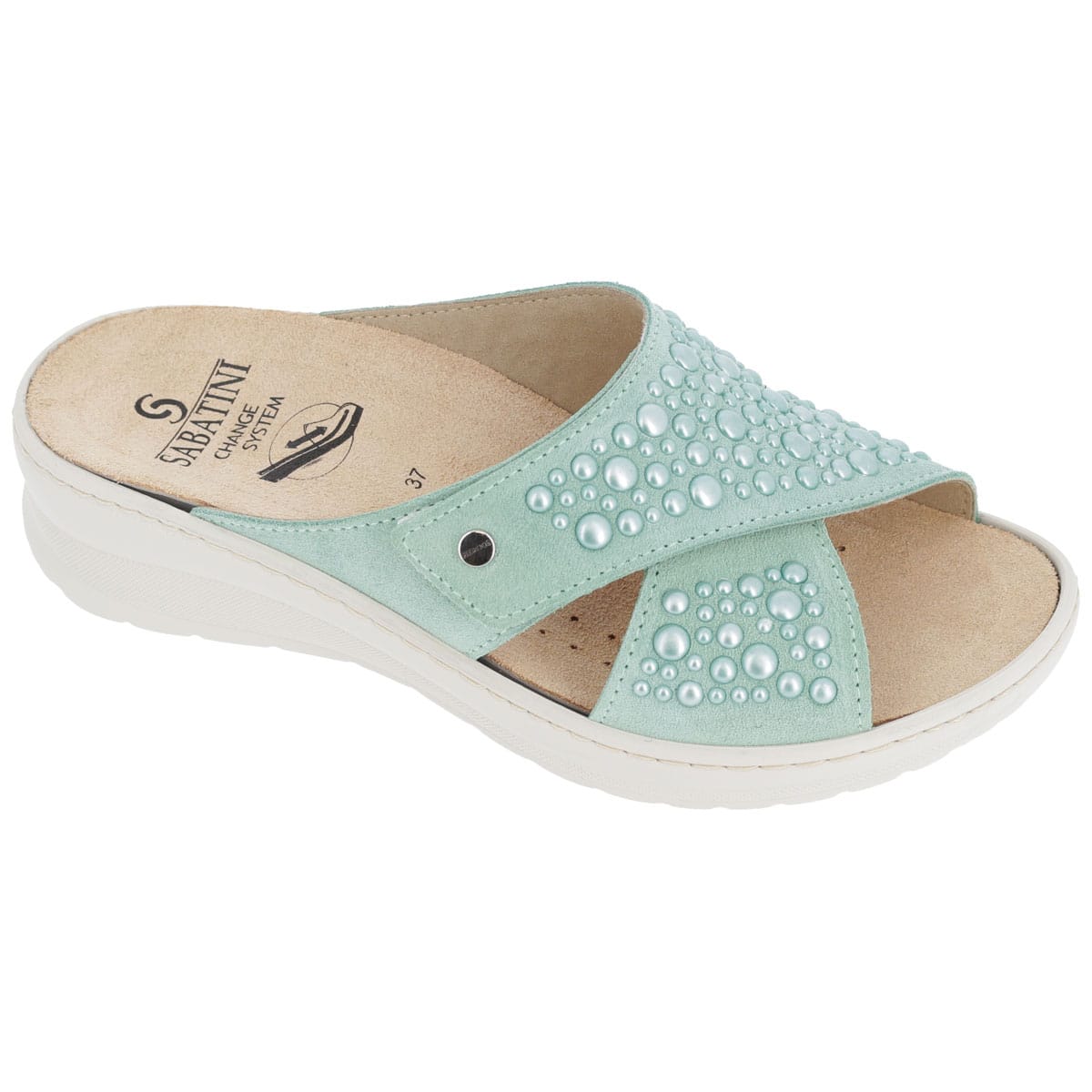S3056P – Ciabatta in pelle con applicazioni gioiello, plantare estraibile – Camoscio Tiffany